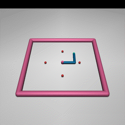 The reward is 4-dimensional and is defined based on the distance of the tip of the arm and the four target locations. For each i={1,2,3,4} it is computed as: